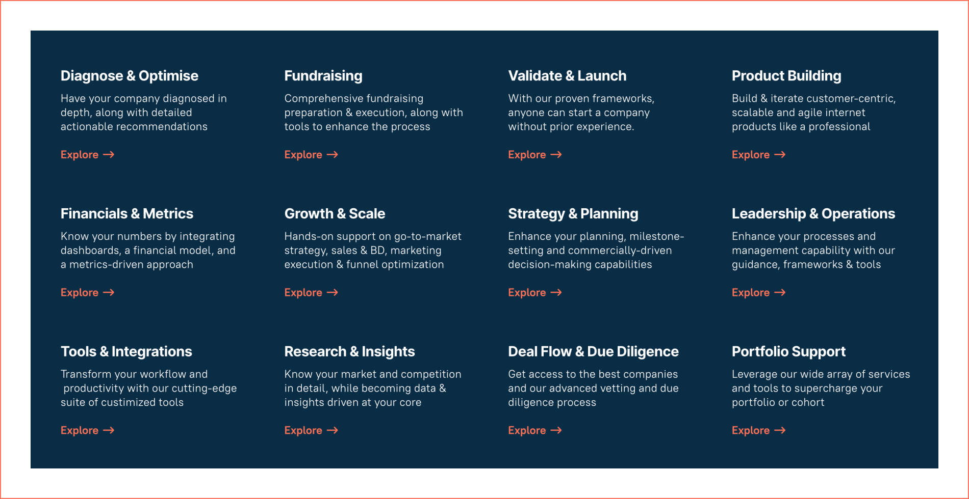 We offer a range of products and services for investors, accelerators and companies at all stages.